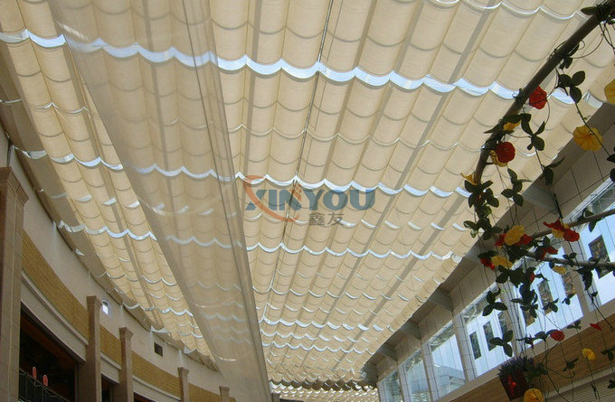 效    果:天棚簾完全展開后,面料呈現均勻的波浪效果。