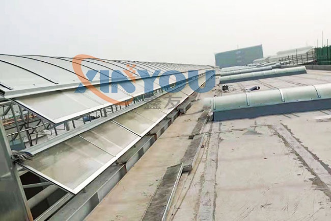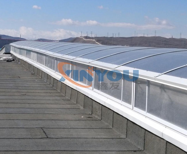 圓拱形的設(shè)計(jì),外觀美觀大氣,能更好的防水,同時(shí)有效減少風(fēng)壓阻力,天窗頂部為采光板,有效增加室內(nèi)亮度,開啟電機(jī)設(shè)計(jì)成24V電壓,可連接消防聯(lián)動(dòng)控制系統(tǒng)及風(fēng)、雨、煙感應(yīng)器。最大開啟角度為30°-60°。